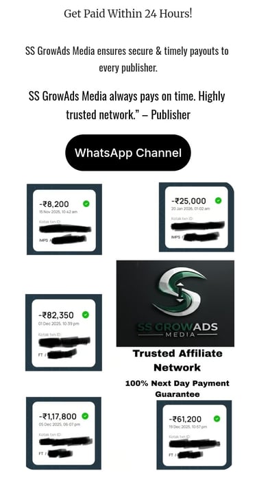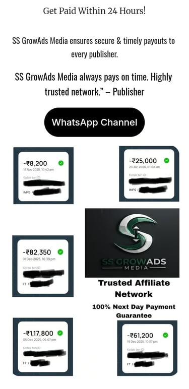 SS GrowAds Media ensures secure & timely payouts to every publisher.