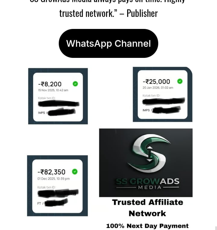 SS GrowAds Media always pays on time. Highly trusted network.” – Publisher